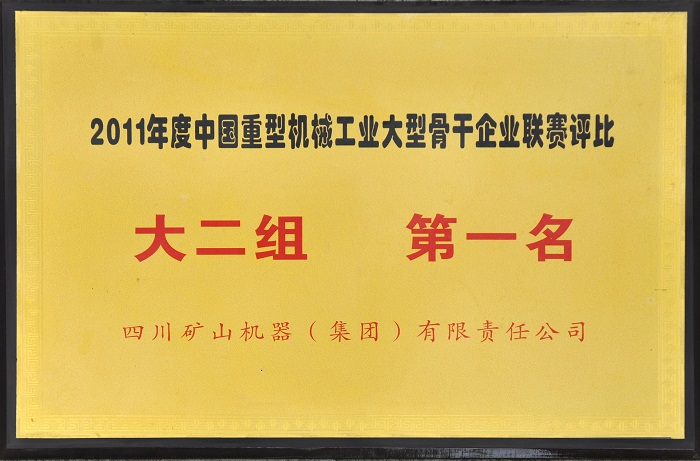 中國重機協(xié)會主持召開的2011年度中國重型機械工業(yè)大型骨干企業(yè)廠際聯(lián)賽評比中,川礦集團榮獲“大二組”第一名。其中“總資產(chǎn)貢獻率”、“成本費用利用率”、“全員勞動生產(chǎn)率”、“工業(yè)經(jīng)濟效益綜合指數(shù)”、“鋼材利用率”、“人均創(chuàng)利稅”、“銷售利潤率”、“單位工資創(chuàng)造工業(yè)增加值”、“工傷事故死亡人數(shù)最低”九個單項指標(biāo)列聯(lián)賽第一名。